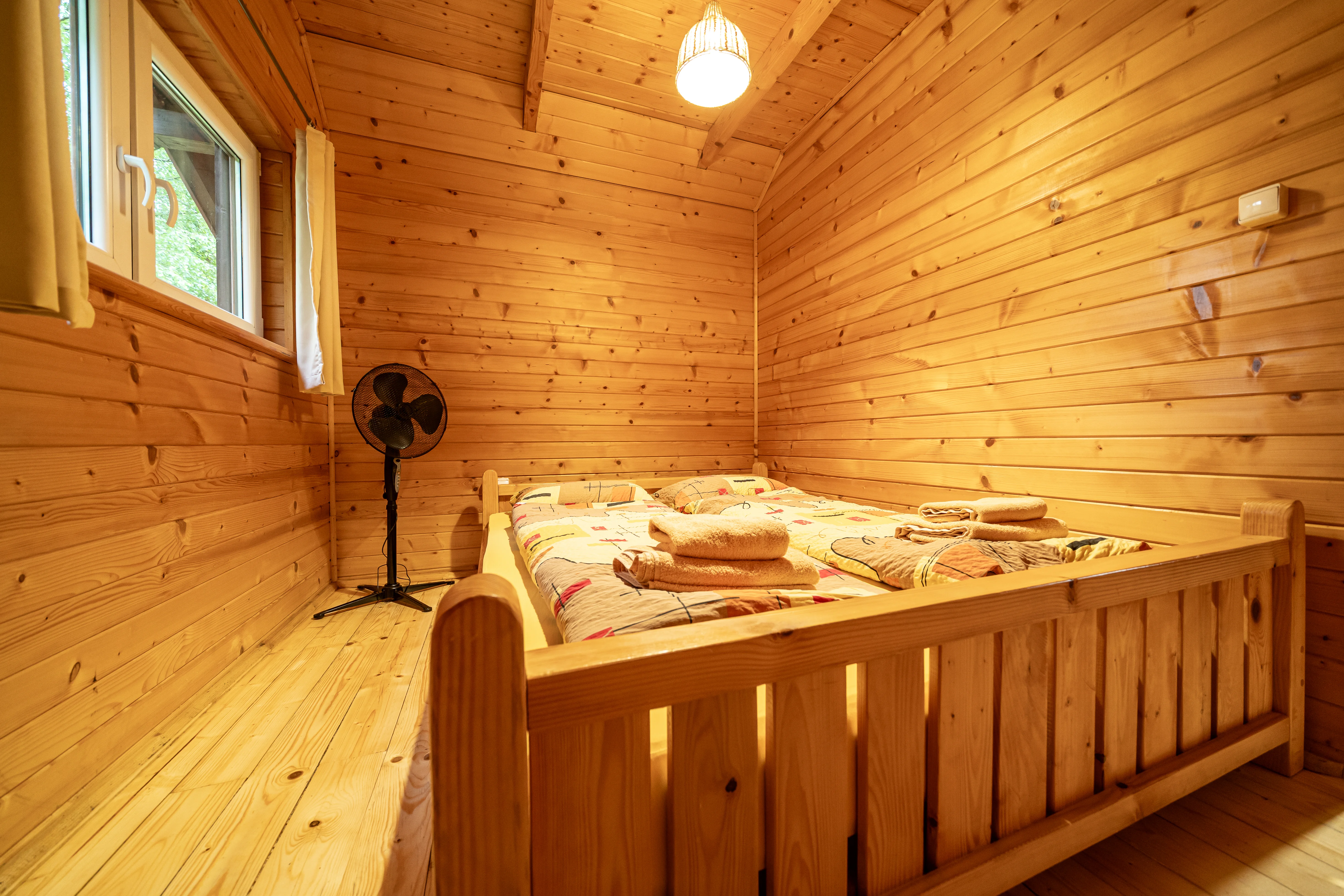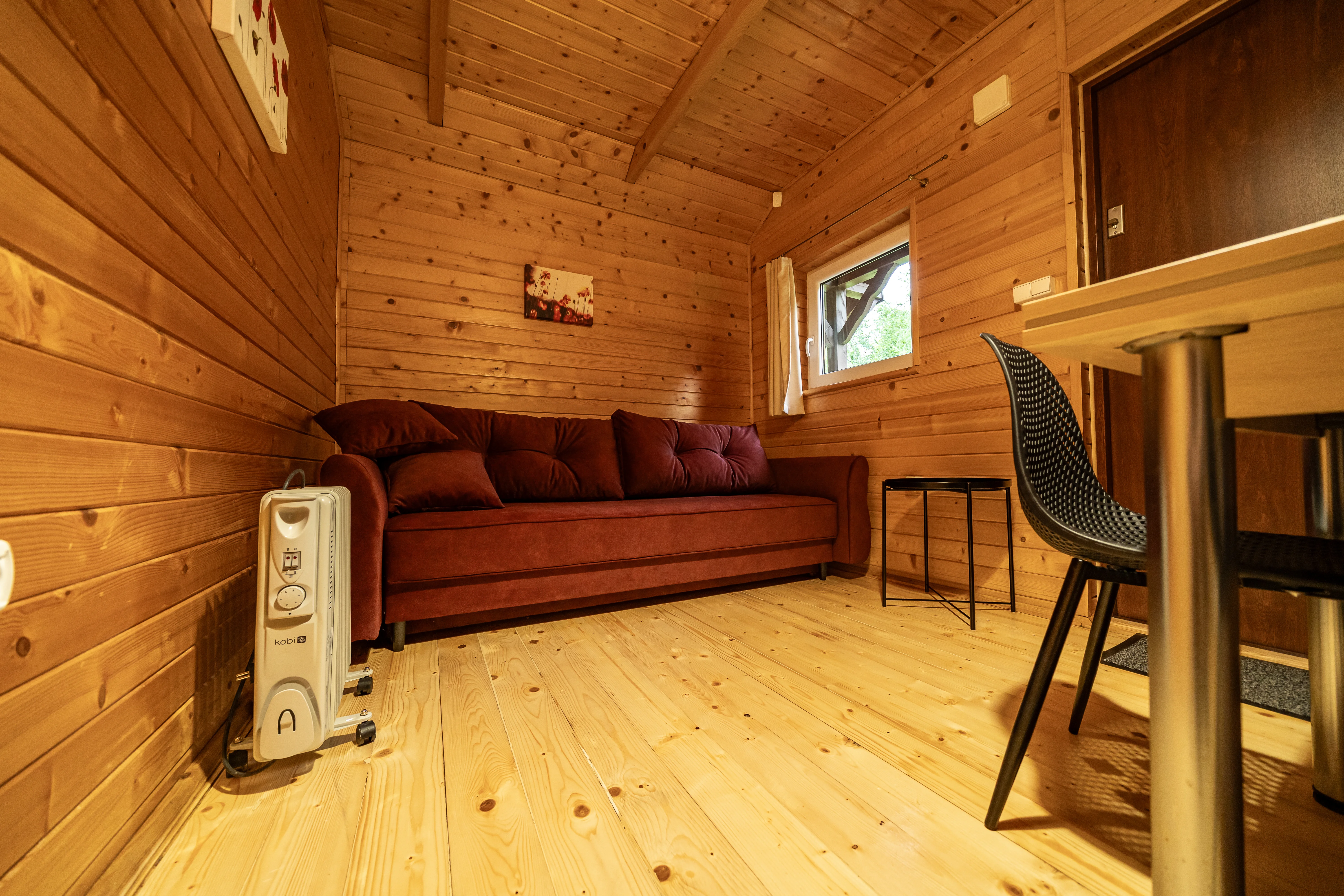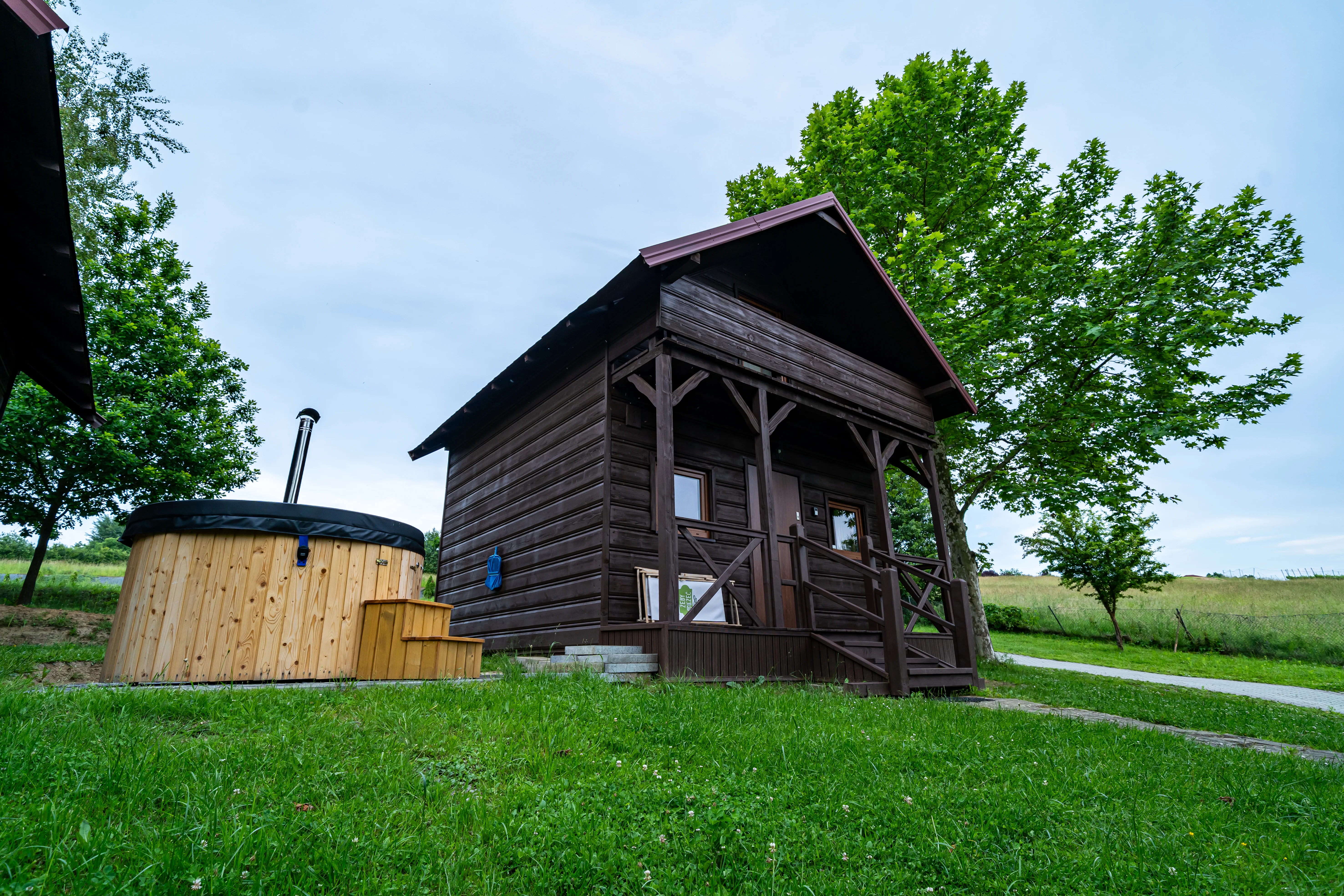 Drewniane domki letniskowe położone w zacisznej części winnicy, tuż przy lesie. Każdy z nich oferuje wygodny salon z telewizorem, aneks kuchenny lub podstawowe wyposażenie kuchenne, łazienkę oraz przytulne sypialnie. Dla pełnego relaksu goście mogą skorzystać z jacuzzi dostępnego przy wybranych domkach. To idealne miejsce na spokojny wypoczynek po dniu pełnym wrażeń w Winnicy Maria Anna.