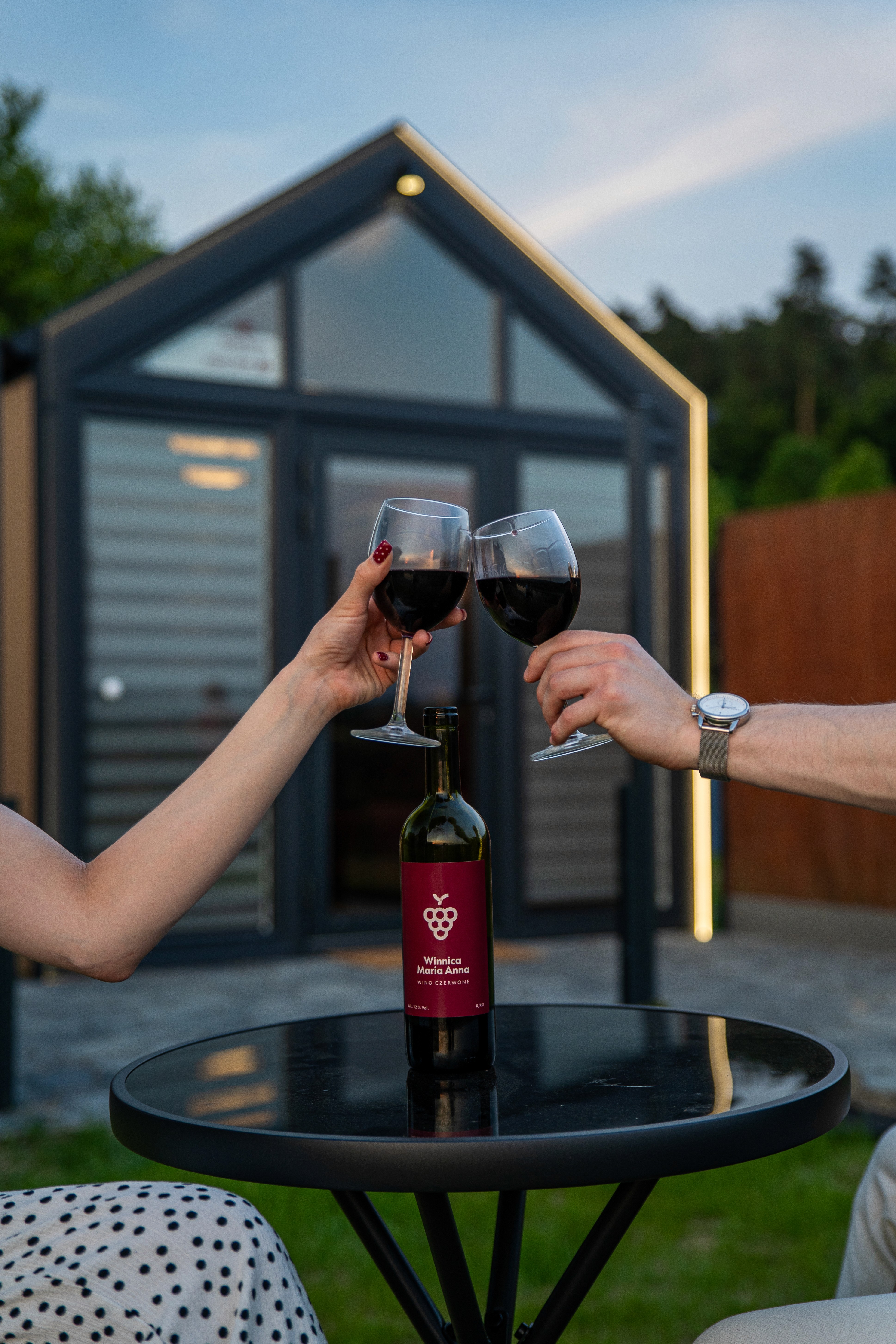 Winne Tarasy to cztery nowoczesne domki – Acolon, Pinot Noir, Bianca i Muscat – usytuowane bezpośrednio wśród rzędów winorośli. Każdy z nich oferuje kameralną przestrzeń do odpoczynku i relaksu, z dużymi przeszkleniami, dzięki którym możesz w pełni cieszyć się widokiem na winnicę. To idealne miejsce na poranną kawę, wieczorną lampkę wina czy weekendowy wypoczynek w ciszy natury.